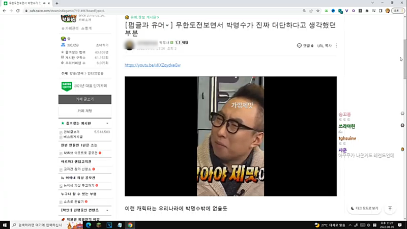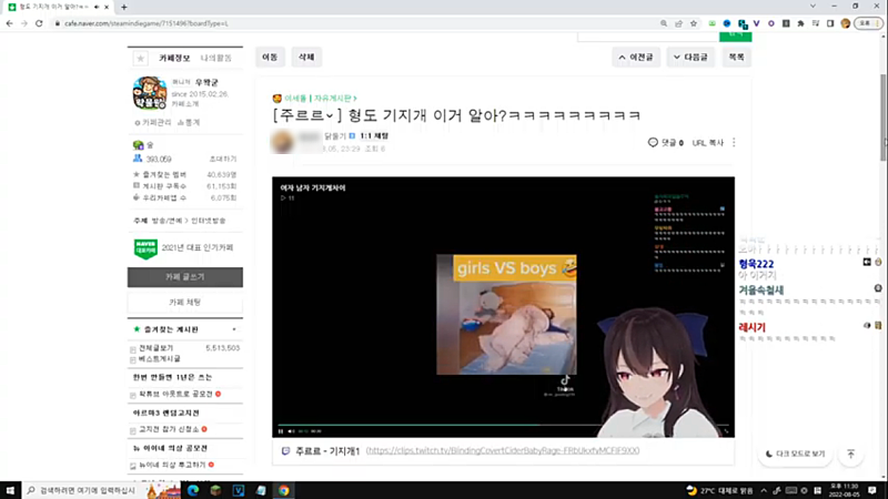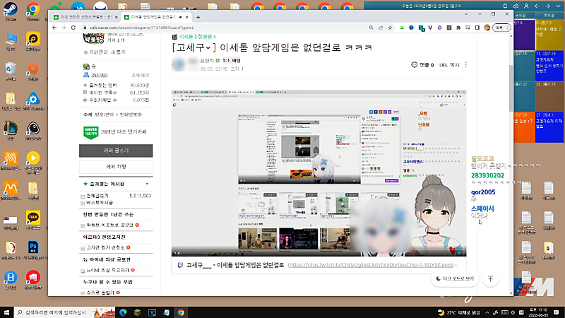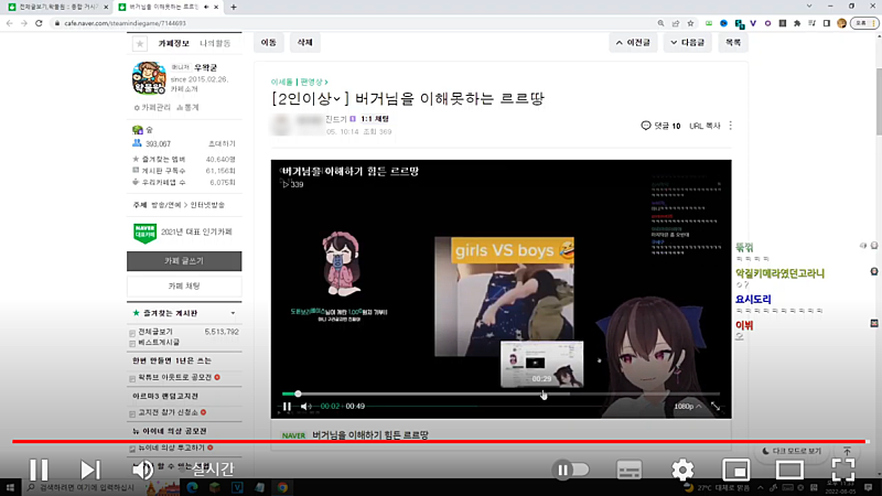 우왁굳의 계륵 유튜브 채널에서 뱅송 진행