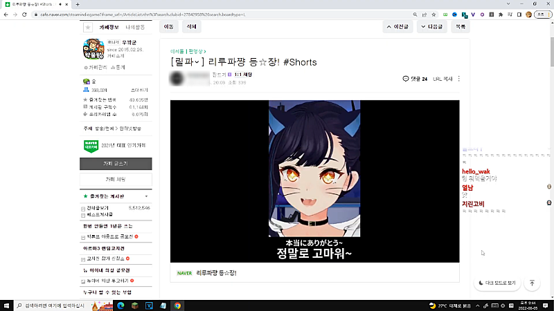 일단 왁튜브 쇼츠 하나 올리고