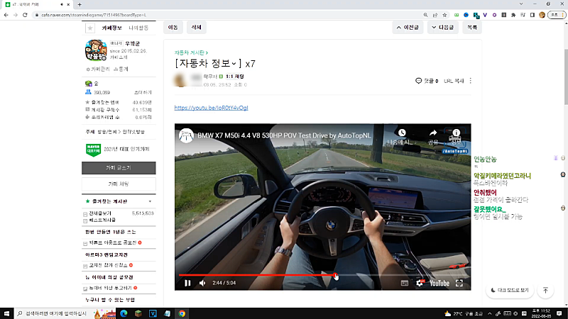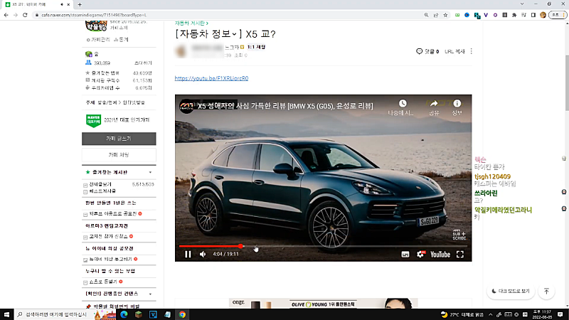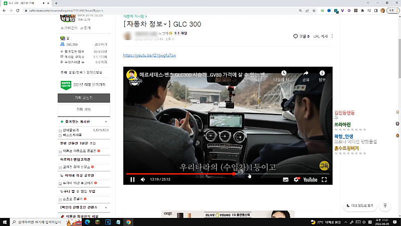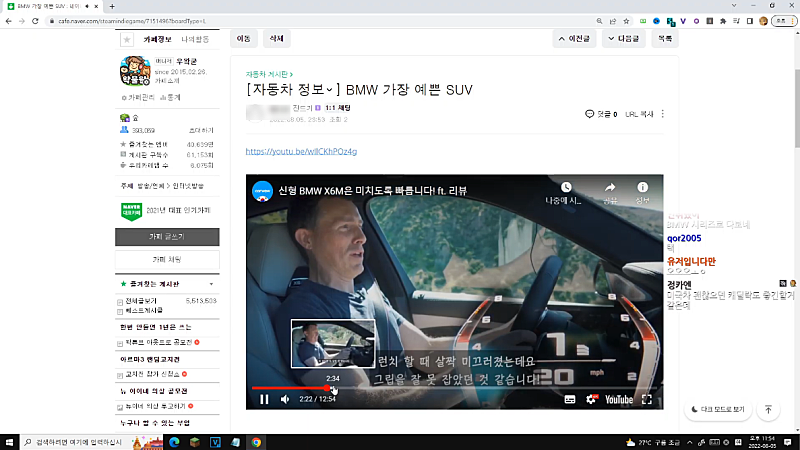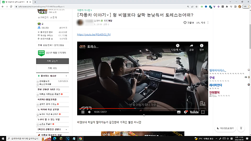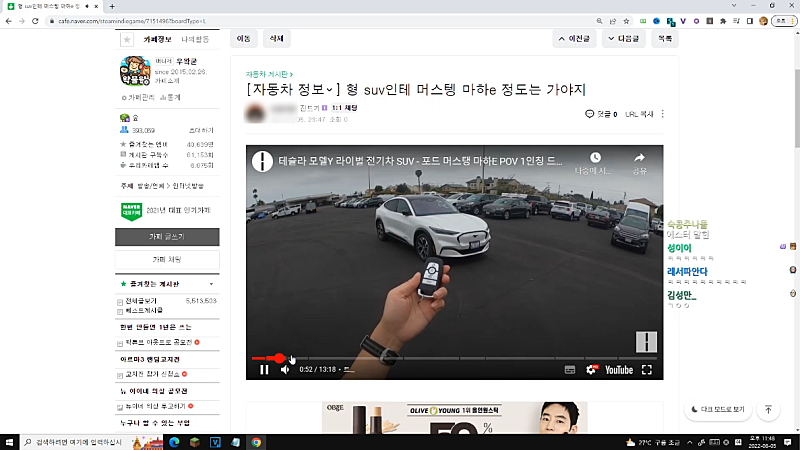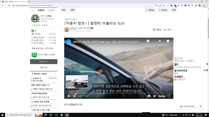 그 이후로 계속 큰 반응 없이 차(SUV) 유튜브 시청