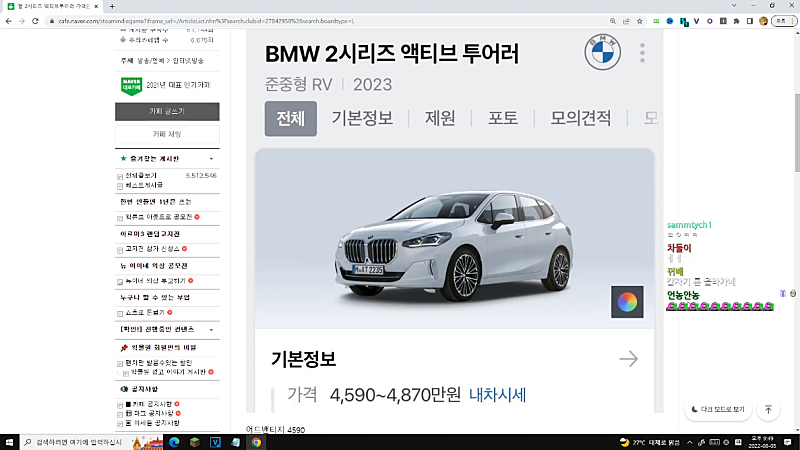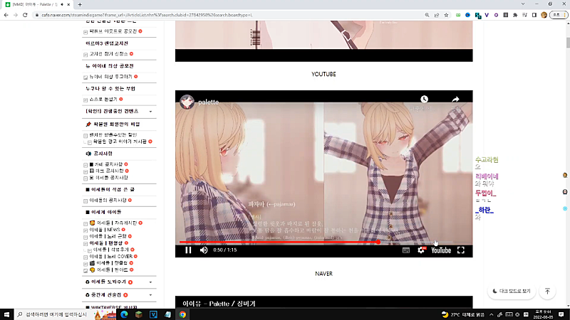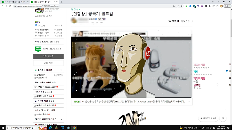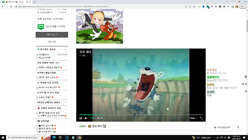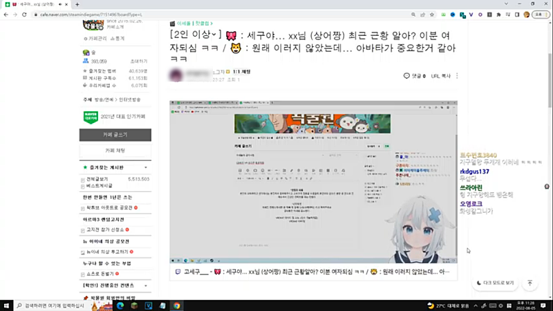 방송 전 채팅창