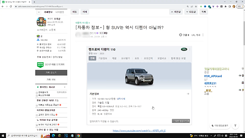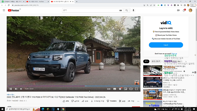(리액션 없이 디펜더 영상 여러개 시청)