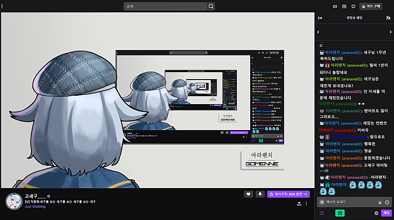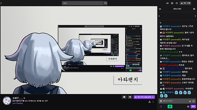 원래 세구님 기본 복장으로 그렸다가 1주년 복장입으신다 하셔서 수정해서 다시 냈는데 기본복장으로 오셔서
