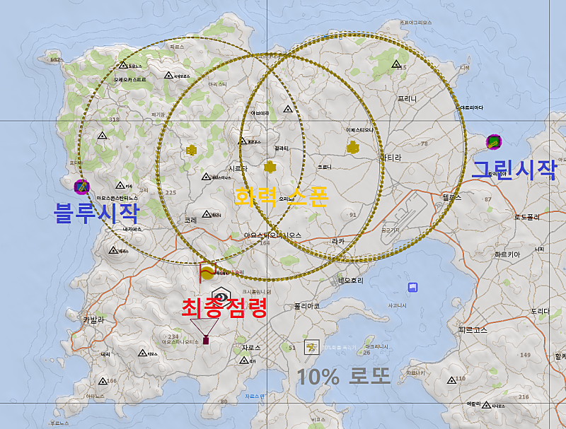 2. 22년 8월 7일 0:00 시에 최종점령지를 점령하고 있는 진영의 승리 입니다. (블루 or 그린)
