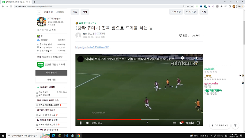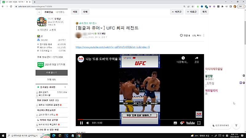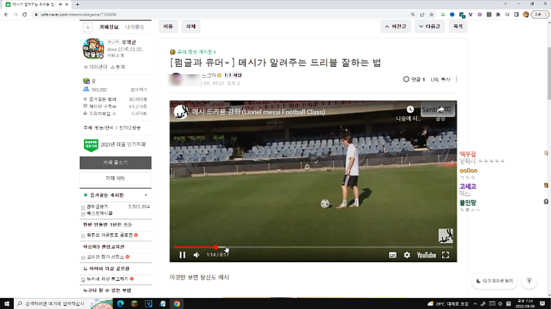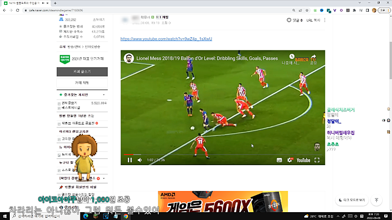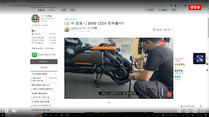 실수로 계륵 유튜브로 방송 켰었음