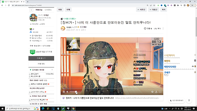 실수로 계륵 유튜브로 방송 켰었음