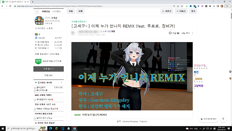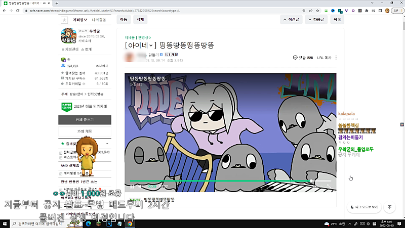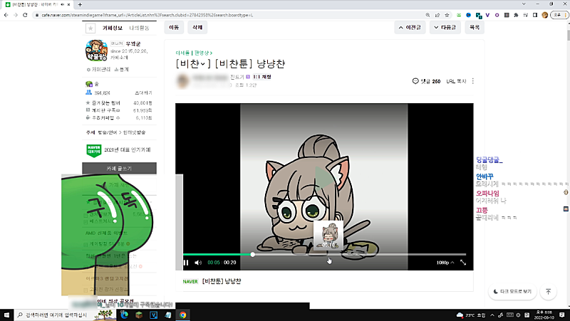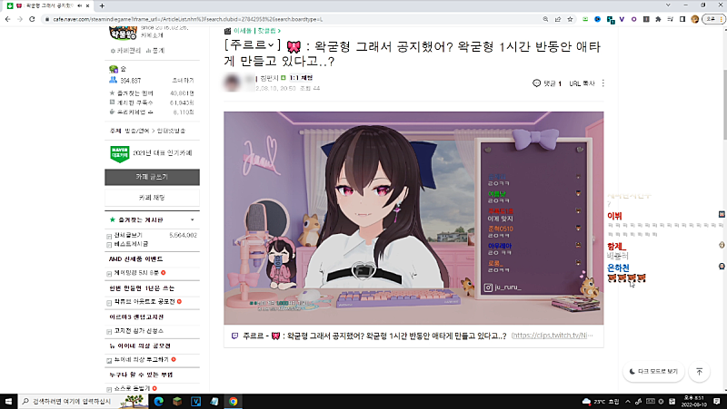 이제 왁물원 좀 보다가 적적하니