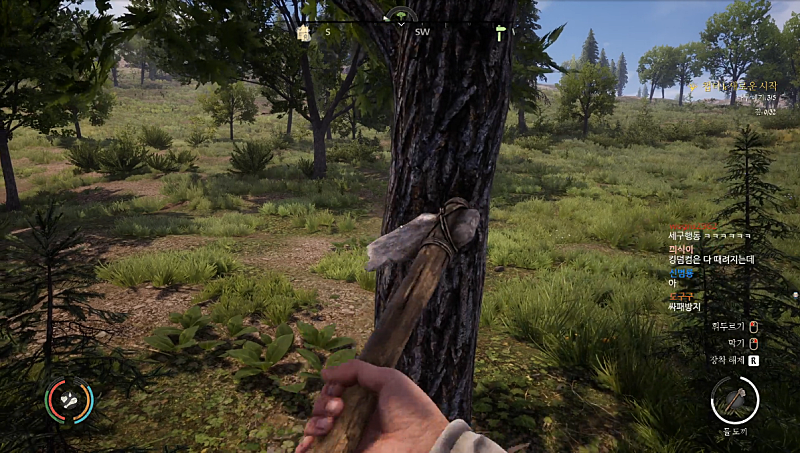 (도끼 준내 휘둘러서 나무 자르고