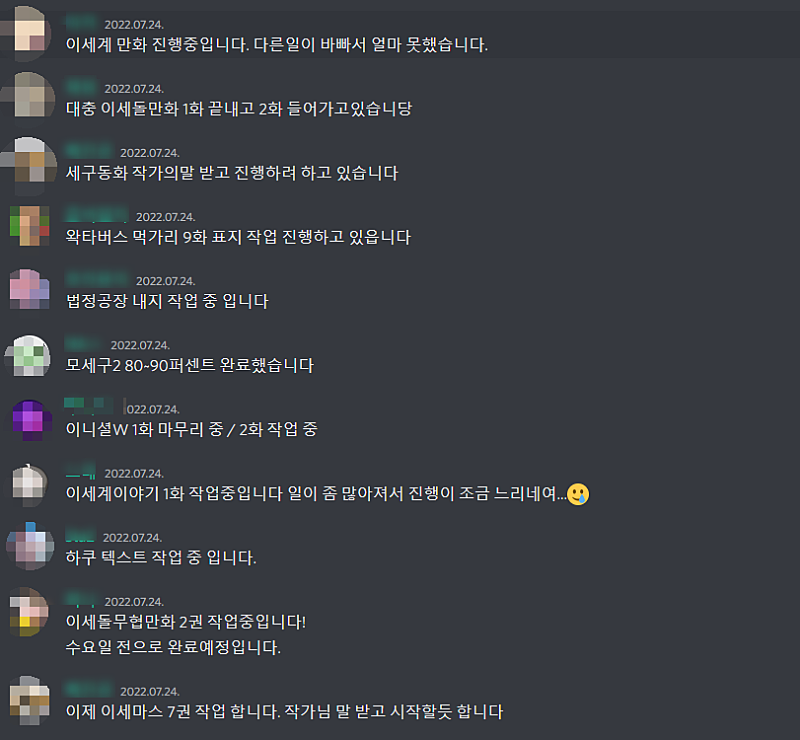 작가님한테 1:1을 보낸뒤 원본을 받고 포토샵분한테 배치해서 편집하는 방식으로 진행됐습니다.