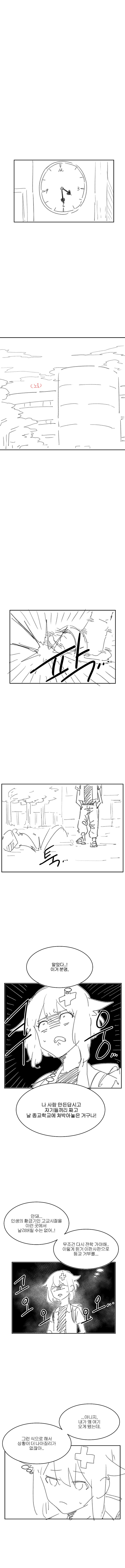 전학 첫 날 부터 전도사에게 붙들리고, 이상한 학교 분위기와 수업내용에 시달리며 학을 뗀 고세구는 어떻게든 이 상황을 벗어날 궁리를 하며 하굣길을 걷는다.