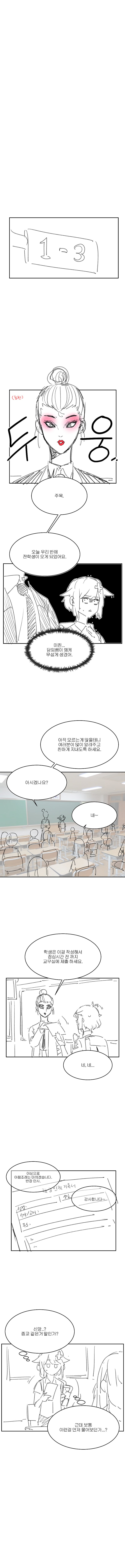 '미친... 담임쌤에 왜케 무섭게 생겼어'