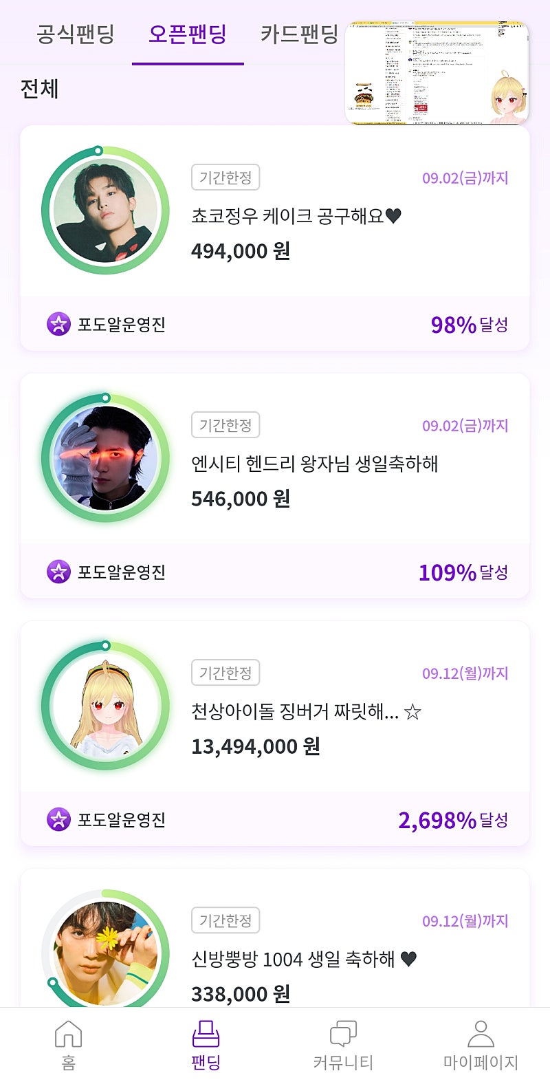 다른 아이돌도 하는 중
