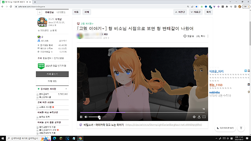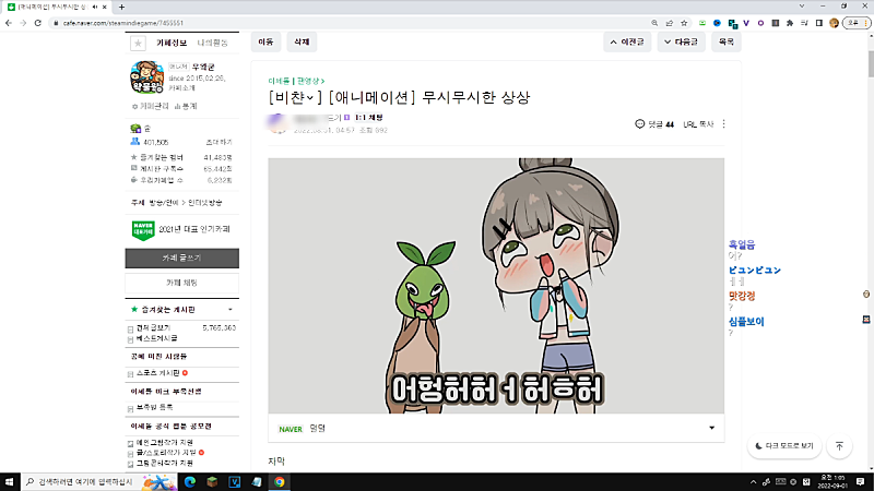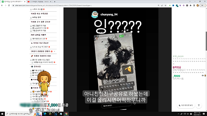 10:28:30 ~ 10:39:40 동물 관련 게시글 &영상