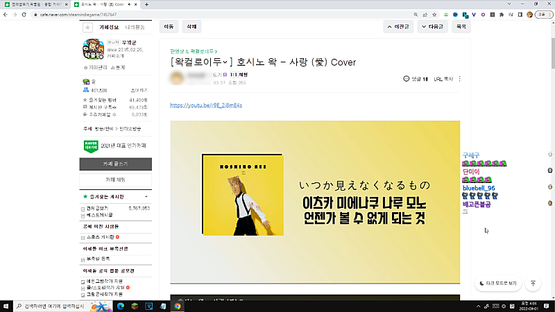 뭐야 자기가 부른거 아 커버라고~ 아 미친