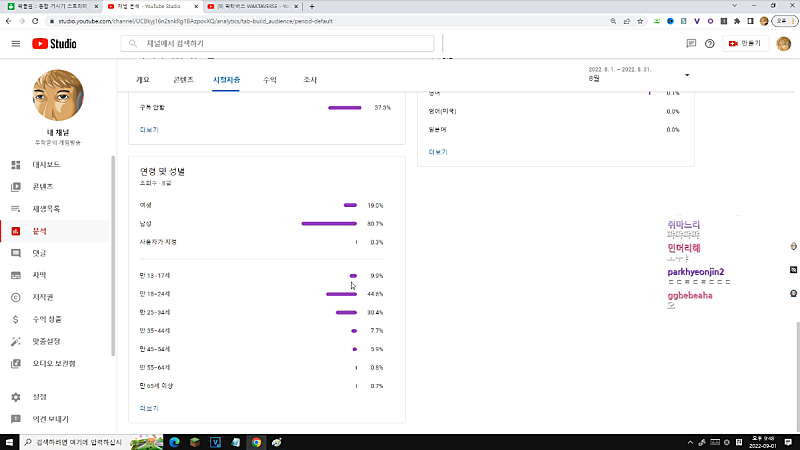 제 유튜브는 20대초반이 평균 연령이라