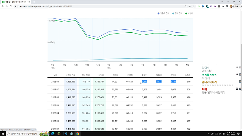 왁물원 카페 그래프 보기