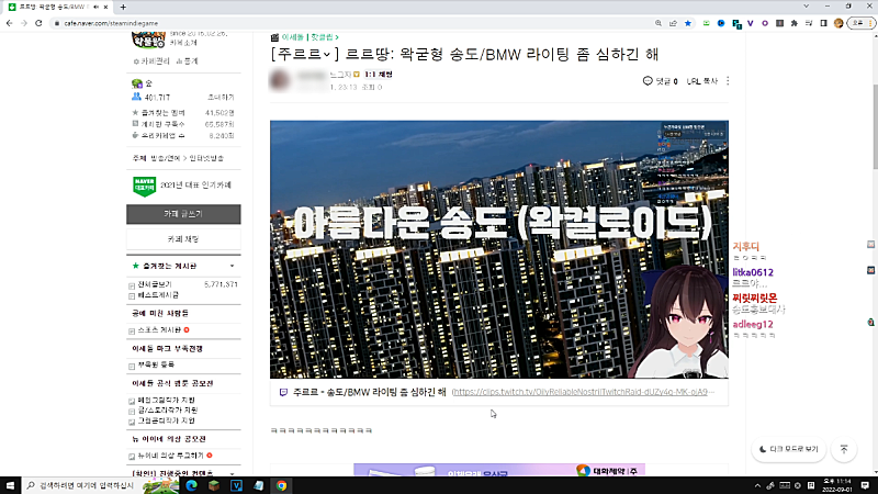 *왁 : 카페 등업 시스템 개패고싶다