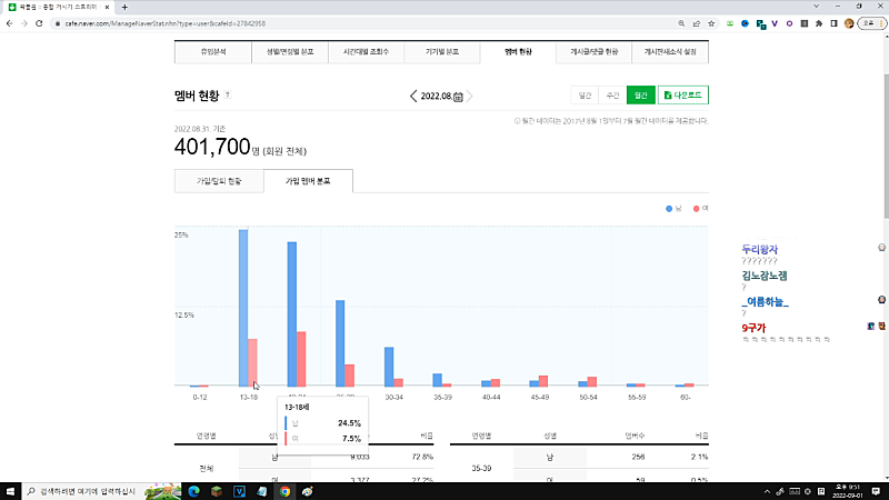 신규멤버 비율이라 들쑥날쑥 하는구나