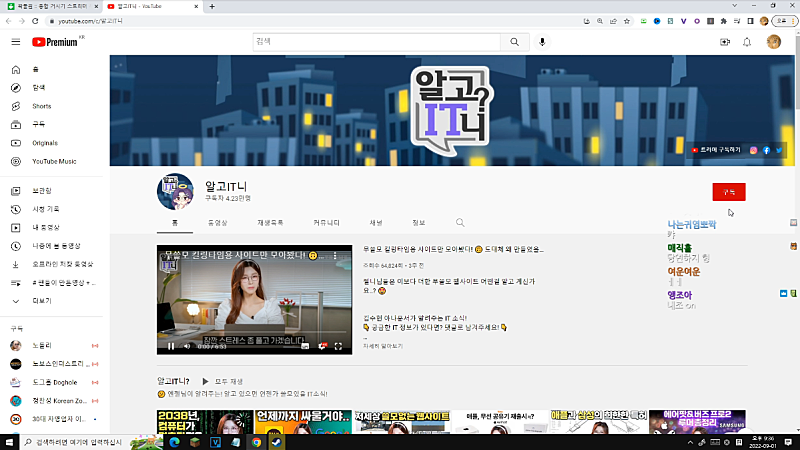 절대 내 유튭 볼것 같은 사람이 아닌데 보는거야