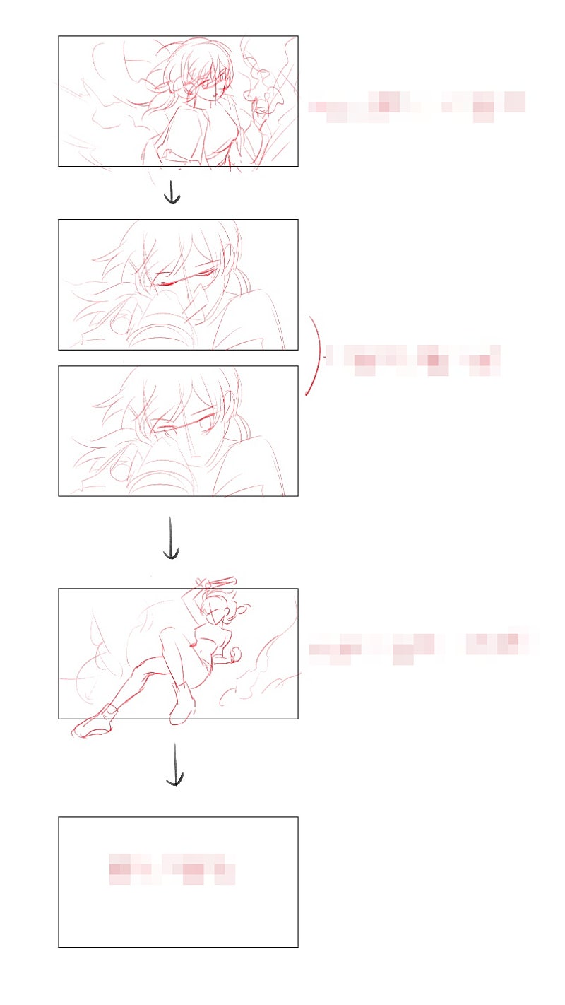 총 쏘는 씬과 달리는 씬은 메인일러스트보다는 애니 그림체처럼 그리는 것에 중점을 두고 작업했습니다ㅎㅎ
