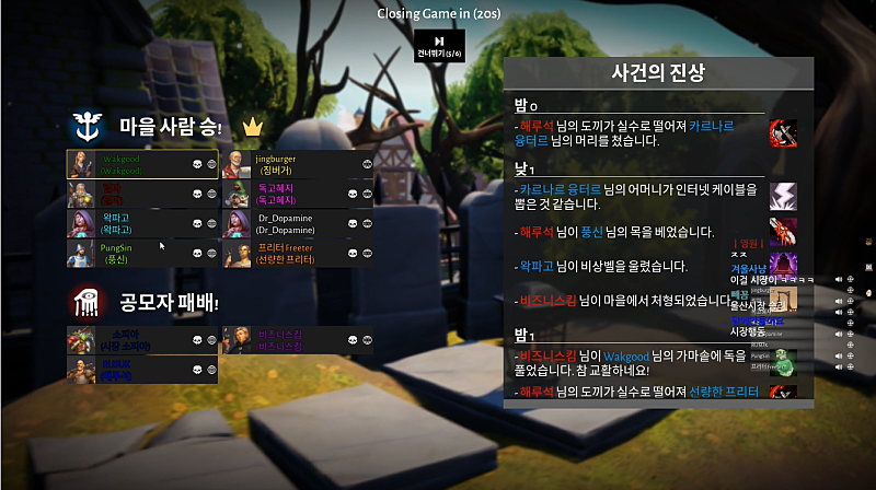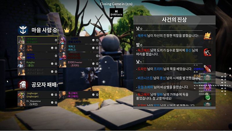 근데 유령이.. 원래 근데 마피아겜하면 죽으면 사람들 보기만 해도 재밌는데