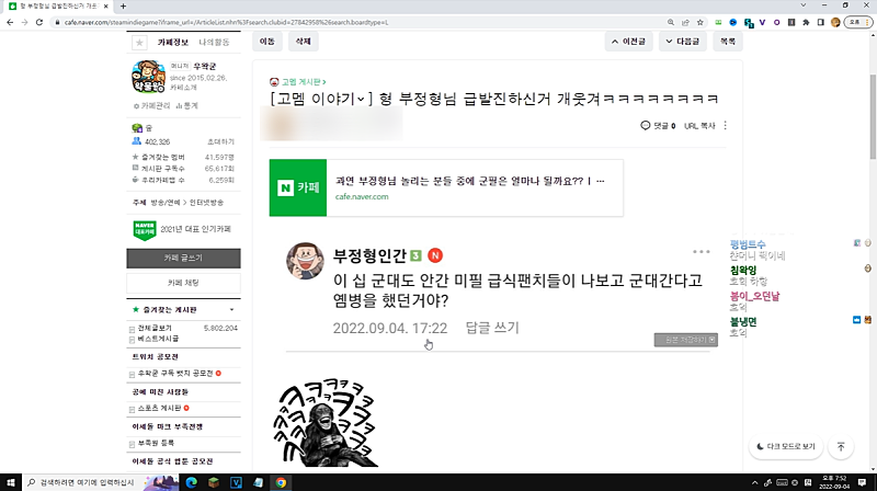 갑자기 즉 팬치가 정답 이지랄하고 있네 ㅋㅋㅋㅋㅋㅋ