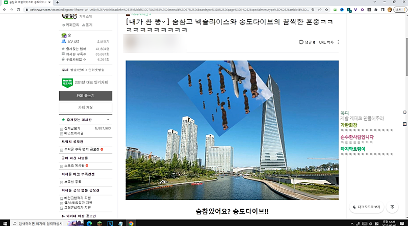 숨참고 송도다이브 숨참고 넥슬라이스 올라올 예정 ㅋㅋㅋㅋ