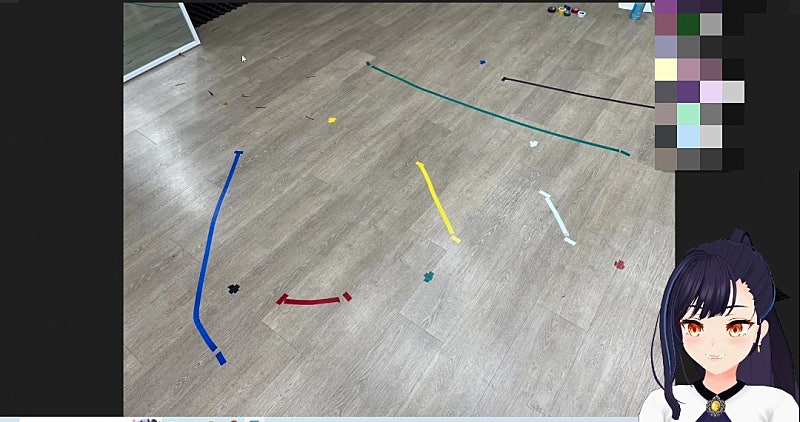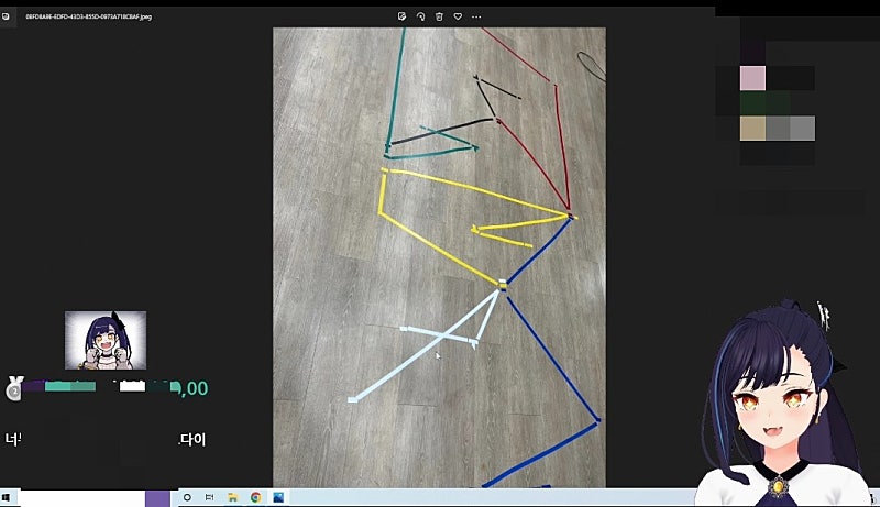 이런식으로도 짜기도 했죠 여기 핀 보여요? 핀? 무수히 떨어진 핀들 이 핀들은 뭐냐면 아니 그 댄스브래이커 할때 그 자꾸 헤드가 날라가는거야 헤드가 머리띠처럼 생겼거든요? 고개를 팍팍돌리고 다리를 팍 뻗잖아 어 근데 1차적으로 뒷발을 차면서 돌릴때 고개가 슉슉 날라가는거야 어 그래서 릴파 캐릭터 머리가 대롱대롱거리고 그러고 있는거에요 그래서 아 안돼겠다 하다가 근데 이거를 진짜 20트 넘게했었어 20트 넘게 하다가 도저히 안돼겠어서 편의점가가주구 실핀을 사왔는데 실핀을 사왔는데도 고정이 잘 안돼더라고 그래가주구 좀 약간의 아쉬운 모시깽이가 있었습니다