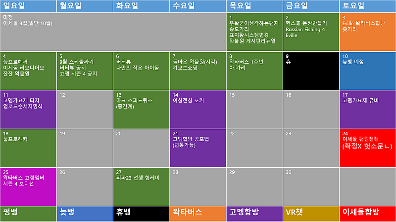 발로 다이아 승급 / 군가리 / 9월 스케줄짜기 / 버터뷰 공지 / 고멤 4기 공지 / 송뽕가리