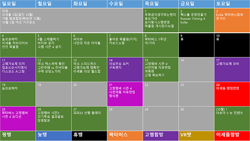 발로 다이아 승급 / 군가리 / 9월 스케줄짜기 / 버터뷰 공지 / 고멤 4기 공지 / 송뽕가리