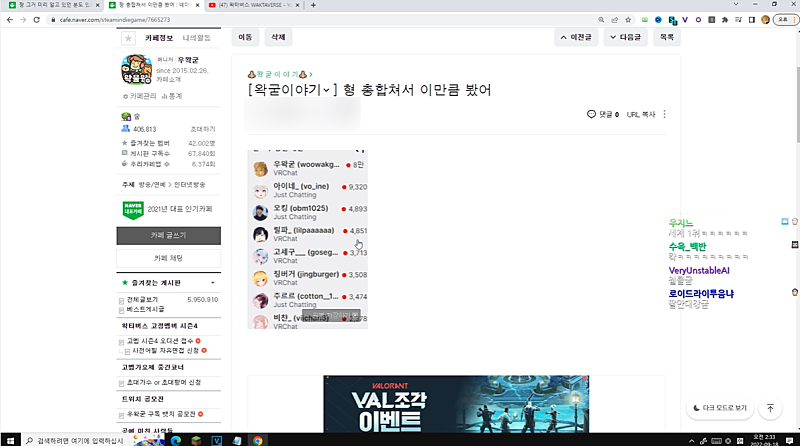 방제: 8시반) 초대시작 9시) 왁타버스 고멤가요제