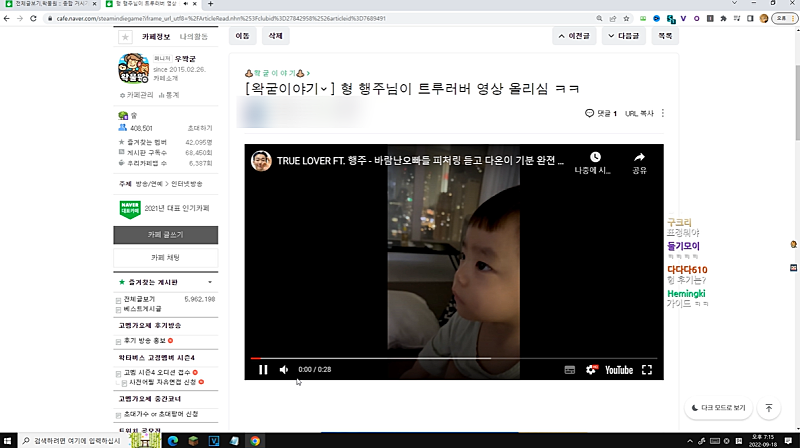 평소에 좋았는게 고멤가요제라 흥분하셔가지고