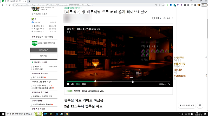10:16:16 고멤가요제를 그럼 한번자막을 음미하면서~