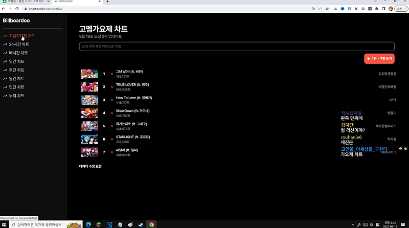 00:42:30 생방인기투표, 유튜브 조회수 50 : 50 들어갈 예정