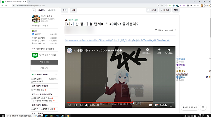 제가 자막 달고 한번도 안봤거든요(고멤가요제)