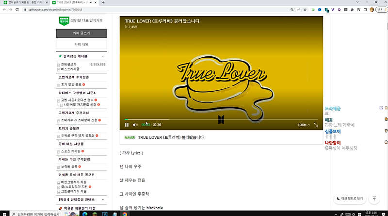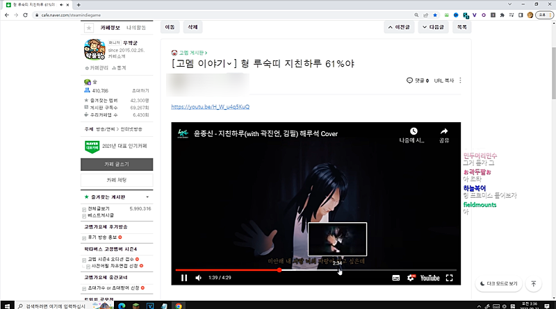 고멤가요제 노래 자막 키고 감상 + 가사분석