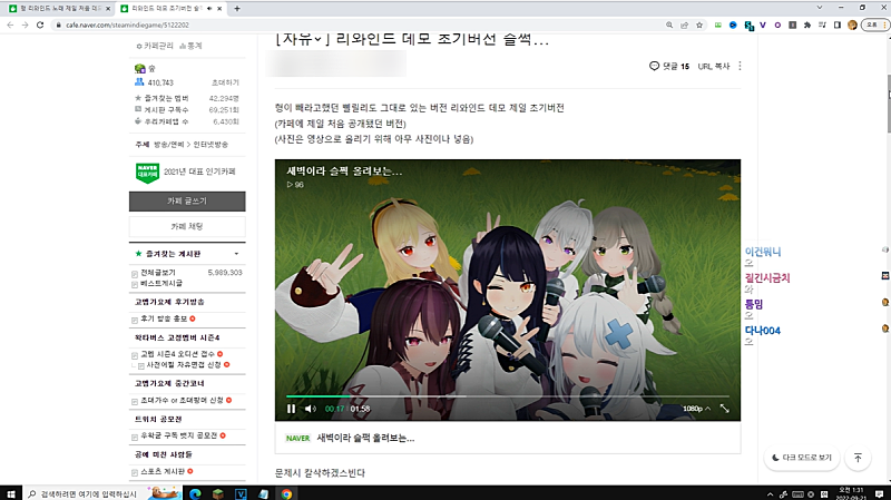 잠깐 이거 이거 근데 잠깐만 이거 팬게임 게시판이 어디있더라?