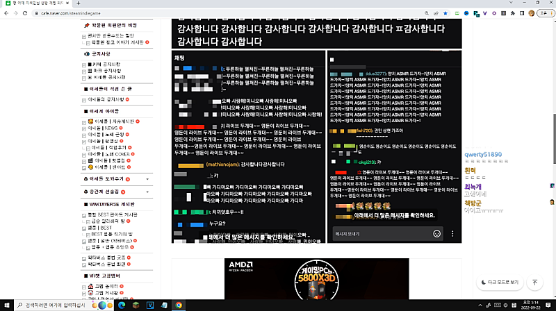 곽춘식 : 마이크 끊기는거 때문에 개빡쳤습니다