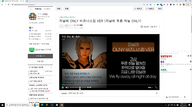 0:11:44 푸른하늘 왜 이렇게 인기 많아진거야?