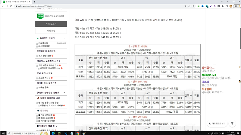 07:24:21 2015 ~ 2019 ASL 스타 종족 승률