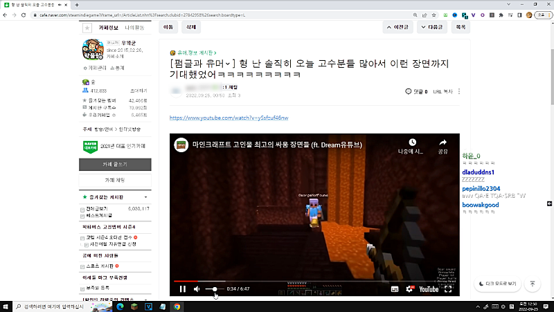 - 대부분 편집 들어간 고멤합방 영상 -