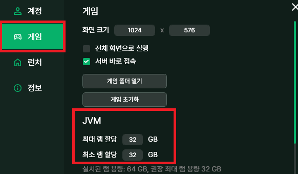 램 설정방법