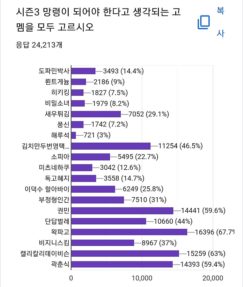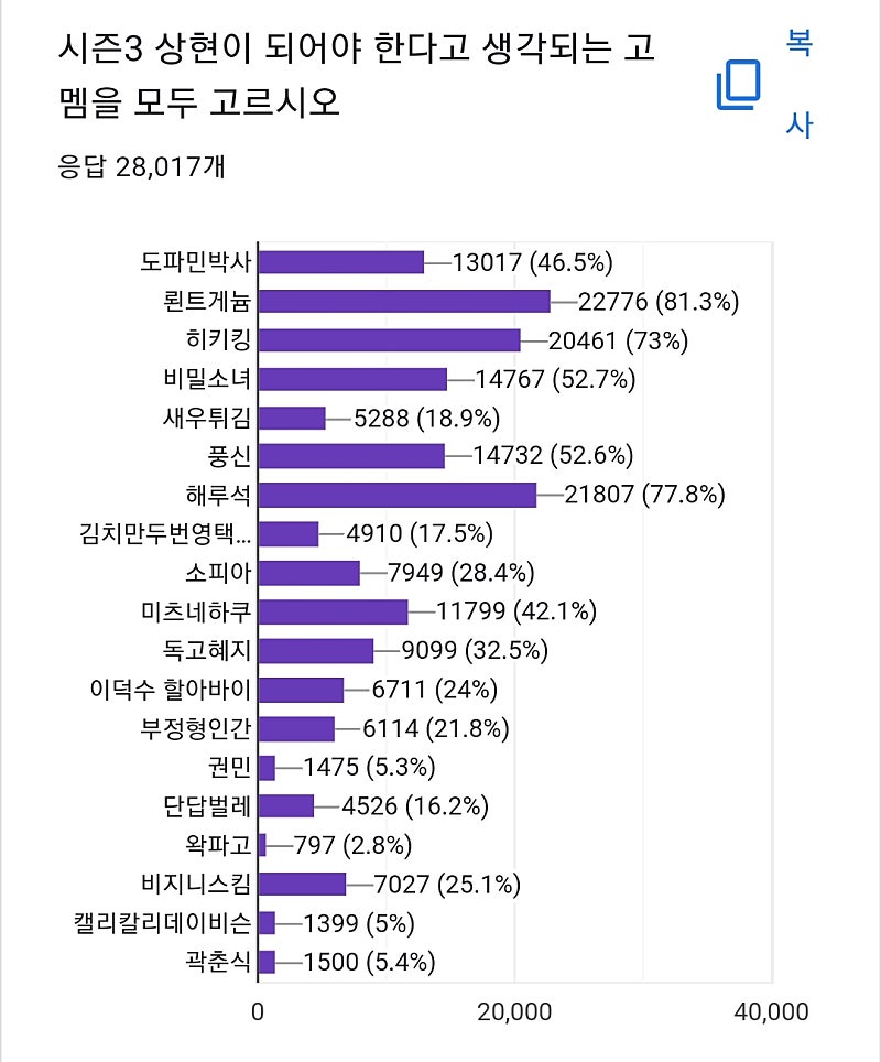 고멤 시즌2 인기투표 결과 발표