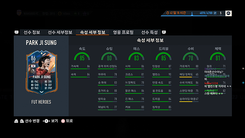 최종 스쿼드 *왼쪽라인 하자 많음