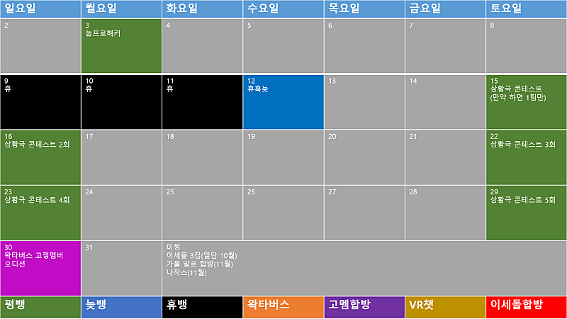 * 회색은 컨텐츠가 정해지지 않은 칸입니다