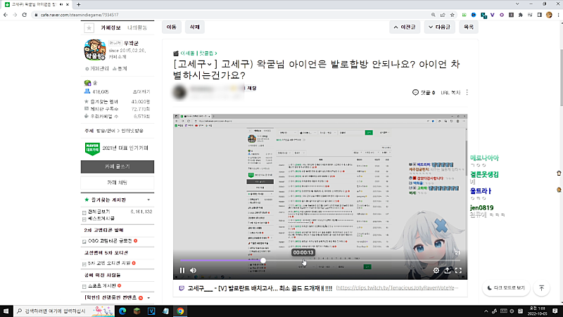3:13:34 고세구 클립 : 울면 녹슨다고 놀려서 찐빡텐