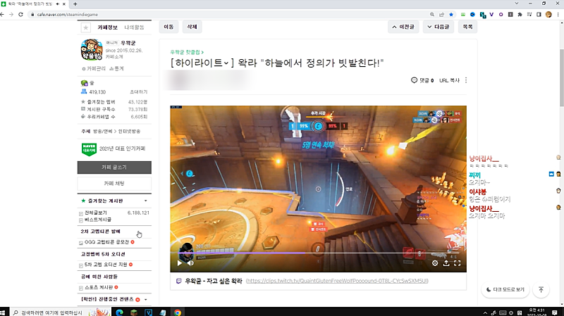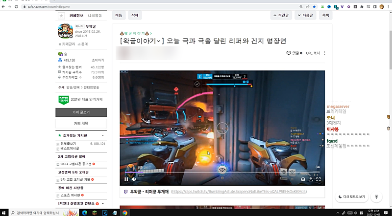 오버워치 하면은 다섯손가락 안에는 들었던거 같은데