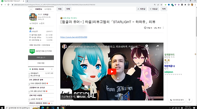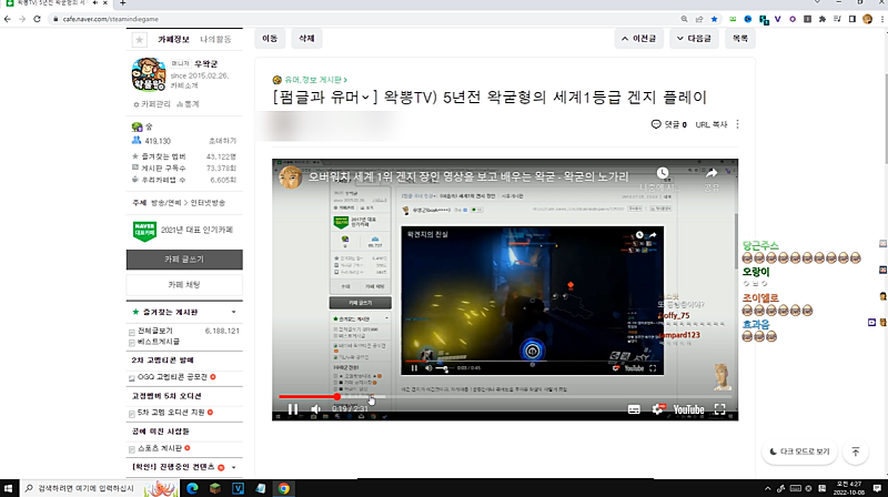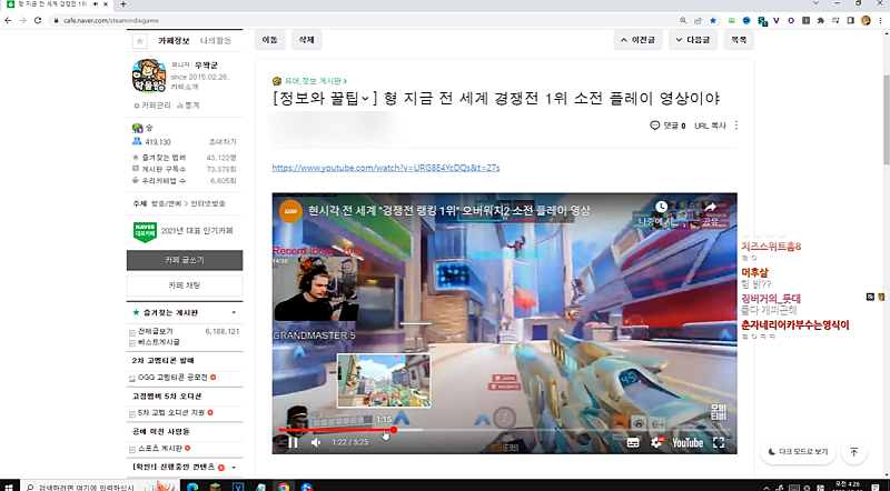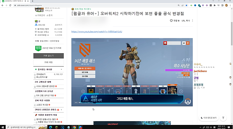 오버워치 유튜버 중 한명일때가 있었지