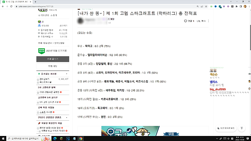 저장면을 느낄라며는 스타 대회를 처음부터