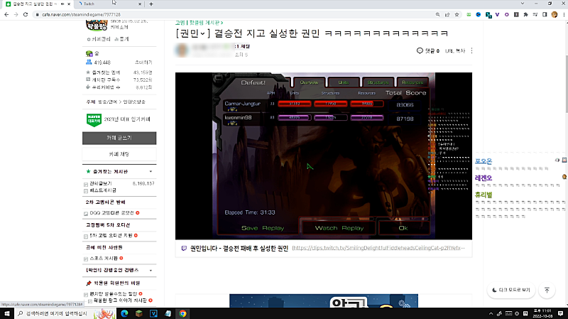오늘 뱅송은 (이세돌 생방 시찰) (광고 신청 메일 도네)