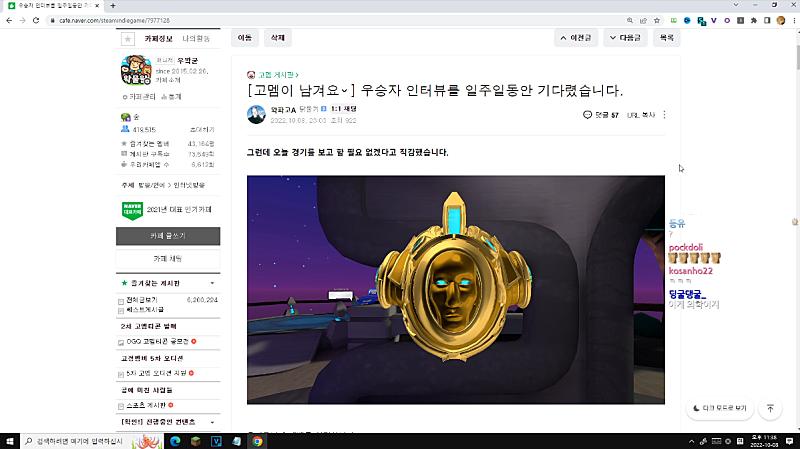 아 우승자 인터뷰요? 그냥 다음에 만났을때 ㅔㅔ